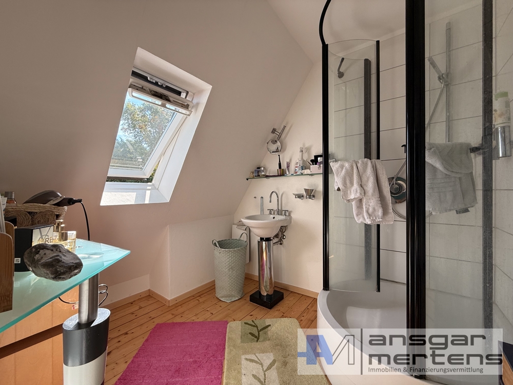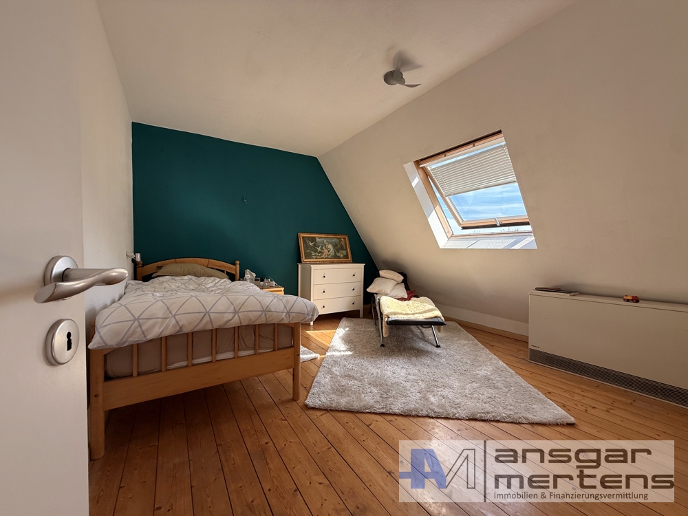 Im 1. Obergeschoss & im Dachgeschoss finden Sie insgesamt fünf Zimmer mit freier Nutzungsmöglichkeit, eines hiervon mit Bad en Suite (Tageslicht-Duschbad), darüberhinaus befindet sich hier noch ein frei zugängliches Tageslichtbadezimmer (Badewanne).