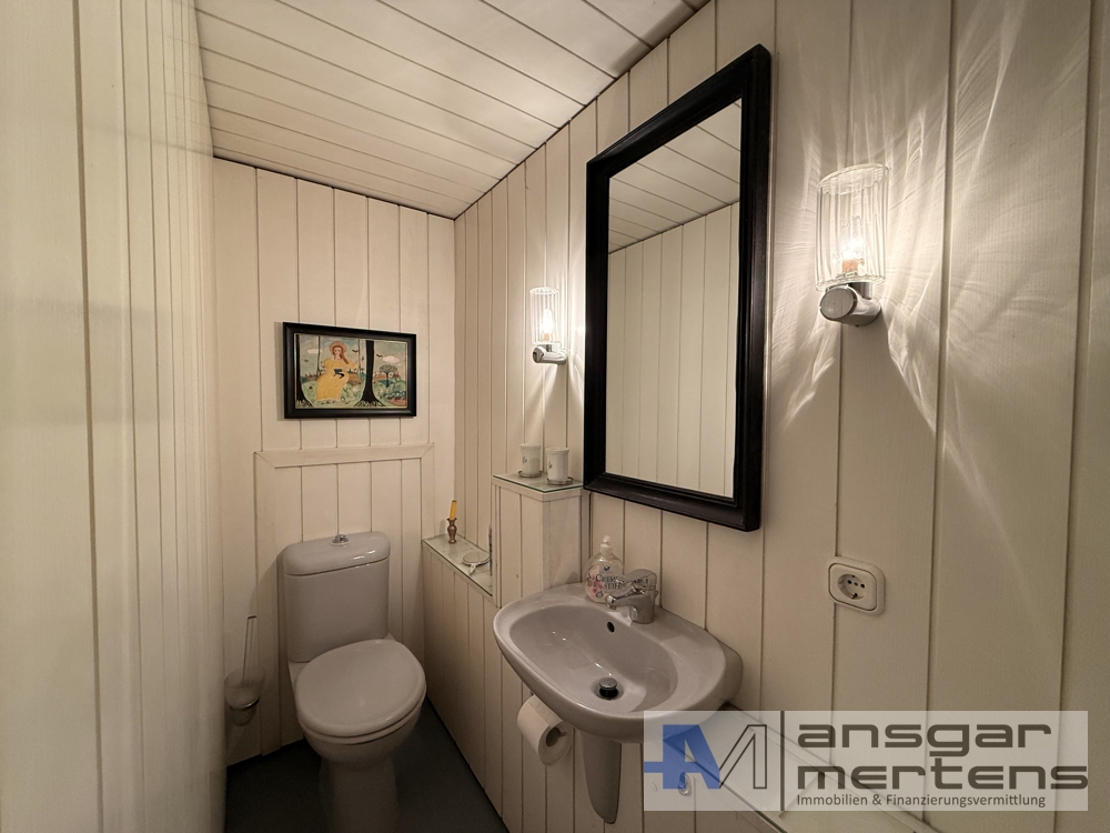 - Erdgeschoss & Keller: Gäste-WC // Tageslichtbadezimmer mit Dusche & Badewanne