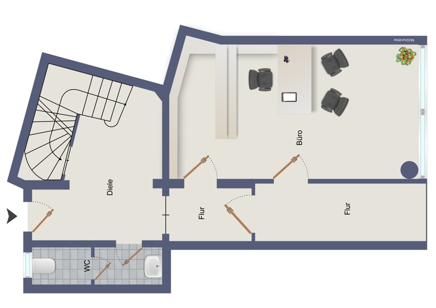 Die Fläche ca. 24 m² im Erdgeschoss verteilen sich wie folgt: