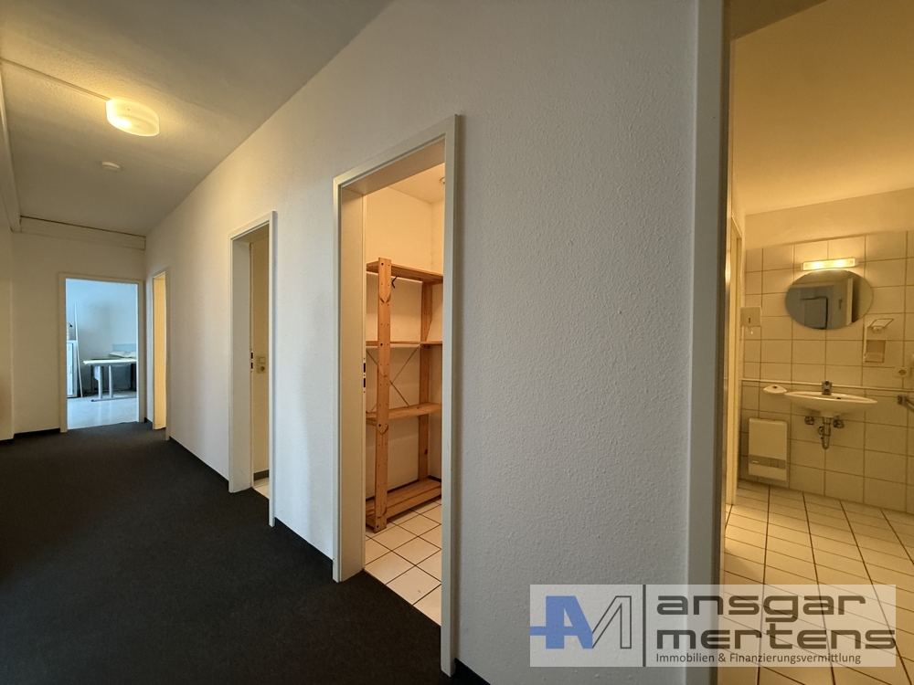 Die offene, helle & freundliche Büroeinheit im 2. Obergeschoss des 1993 komplettsanierten Gebäudes umfasst mehrere Zellenbüros & Besprechungsräume, welche selbstverständlich über einen Sozialbereich mit einer Küchenzeile nebst getrennten WC's, Lager & Serverraum verfügt.